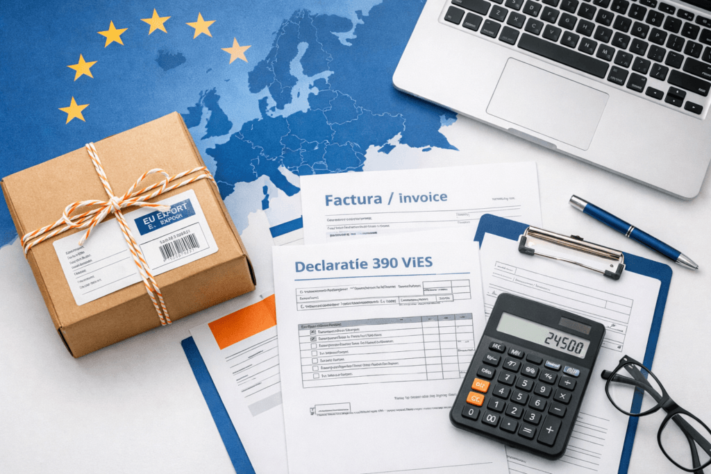 În dinamica schimburilor comerciale actuale, tot mai multe societăți românești accesează piețele externe încă din primele luni de activitate. O situație frecvent întâlnită în practică vizează entitățile care, deși funcționează sub regimul special de scutire pentru întreprinderile mici (neplătitoare de TVA), identifică oportunități de a livra bunuri către parteneri stabiliți în alte state membre ale Uniunii Europene.